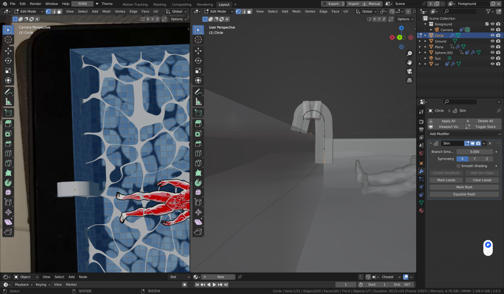 • Tracking: aligned the CG camera in Blender with the real plate.