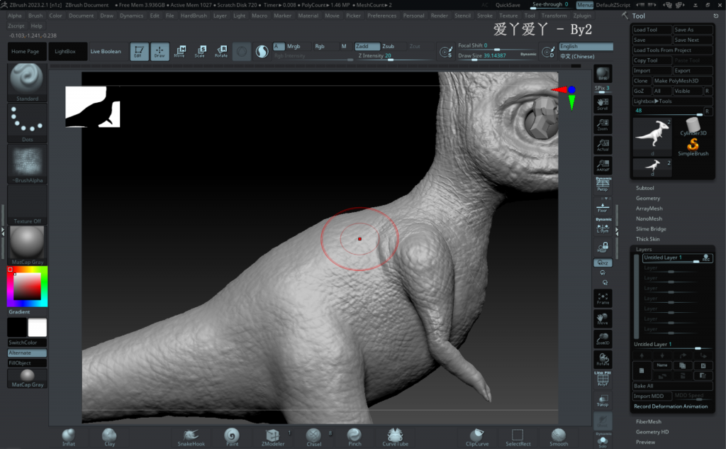 D7 was sculpted in ZBrush, textured in Substance Painter, and rigged in Blender. Its design is inspired by the parasaurolophus, mixed with human-like expressions and childlike proportions.